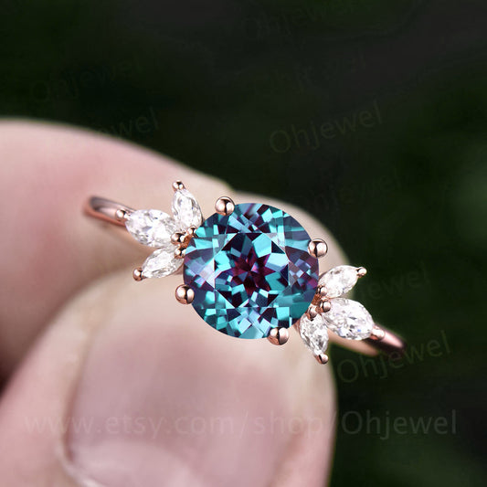 Alexandrite ring for women vintage unique round halo cluster moissanite color change alexandrite engagement ring rose gold wedding gift ring