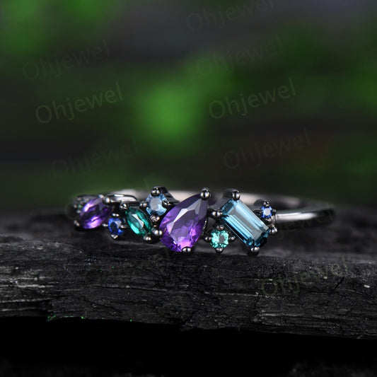 Dainty pear amethyst wedding band 14k black gold Baguette alexandrite ring women emerald sapphire topaz multi-stone rings anniversary gift