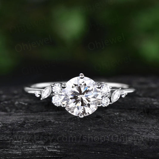 1ct round cut Lab grown diamond moissanite engagement ring solid 14k rose gold cluster snowdrift ring unique promise wedding ring women