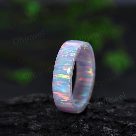 5mm White opal wedding band mens fire opal ring band anniversary gift for him her unique engagement ring women October birthstone ring