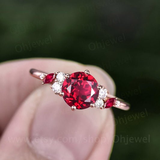 1ct round cut red ruby ring rose gold cluster snowdrift unique engagement ring women 6 prong promise ring her jewelry