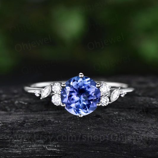 1ct round cut natural Tanzanite ring solid 18k rose gold cluster snowdrift unique engagement ring women diamond promise ring her jewelry