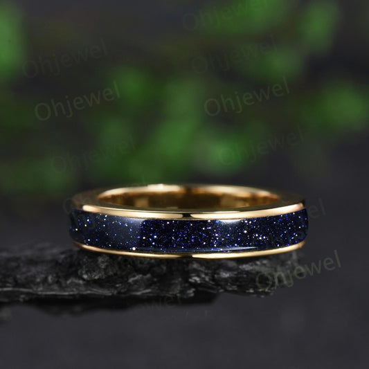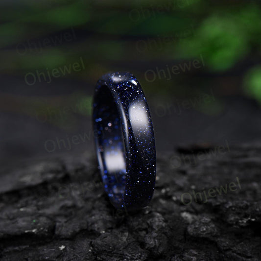 5mm Blue sandstone wedding band mens blue goldstone ring band anniversary gift for him her unique engagement ring women