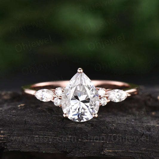 Pear shaped moissanite engagement ring vintage marquise moissanite ring unique 7 stone ring rose gold ring women bridal anniversary gift