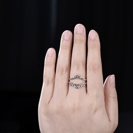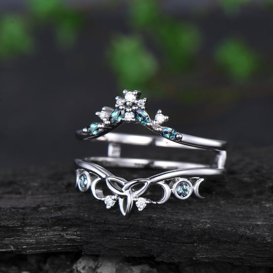 Double curved Alexandrite wedding band enhancer white gold moon cluster diamond wedding ring band women vintage anniversary gift