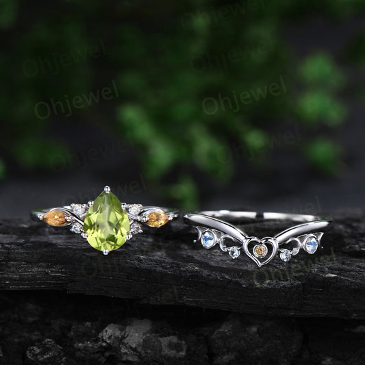 Vintage pear cut peridot engagement ring white gold 6 prong twisted citrine bridal set women moonstone aquamarine wedding band gemstone gift