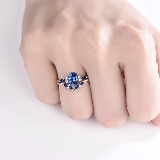 Unique oval Tanzanite engagement ring cluster diamond ring vintage marquise natural sapphire ring women wedding bridal ring set fine jewery