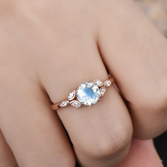 1ct natural moonstone engagement ring rose gold 14K/18K moonstone ring gold art deco flower moissanite June birthstone wedding promise ring