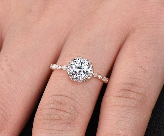 1ct brilliant moissanite engagement ring rose gold 14K/18K vintage moissanite halo ring for women jewelry unique gift half eternity ring