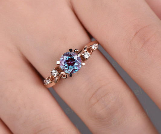 Unique moissanite ring color change alexandrite engagement ring rose gold for women vintage June birthstone anniversary wedding ring band