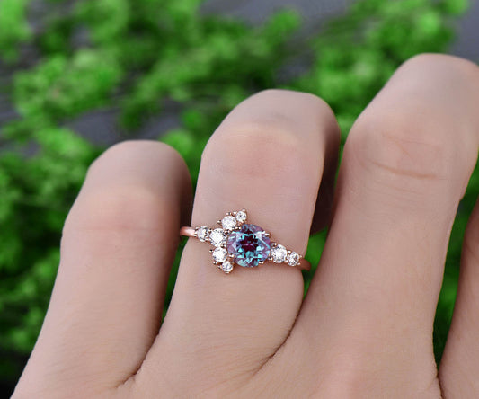 Color change Alexandrite bridal ring vintage Alexandrite engagement ring rose gold for women moissanite cluster ring June birthstone ring
