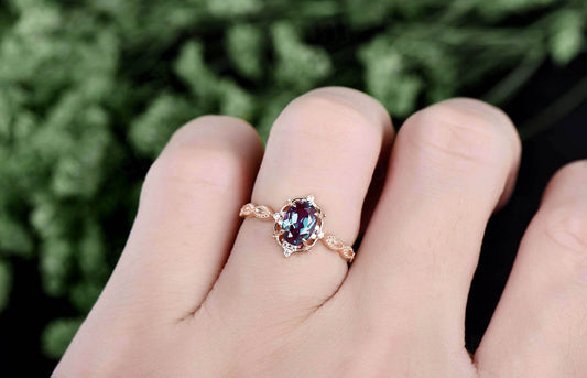 Antique diamond ring color change alexandrite engagement ring rose gold alexandrite ring gold vintage unique wedding ring band promise ring