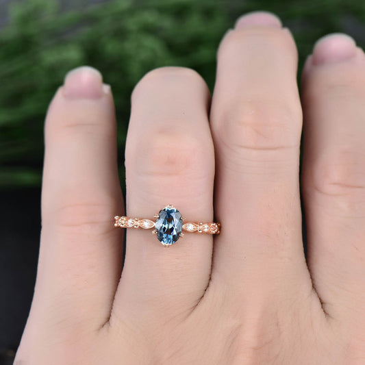 Oval alexandrite ring vintage color change alexandrite engagement ring rose gold moissanite ring for women jewelry unique bridal ring gift