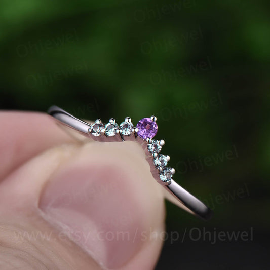 Amethyst ring Curved V Alexandrite wedding band matching stacking ring band white gold jewelry anniversary birthday gift