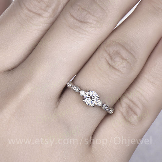Vintage moonstone ring gold silver for women solitaire moonstone engagement ring leaf flower ring antique dainty custom ring promise ring