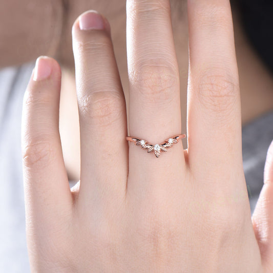 Leaf twig diamond wedding band three stone 14k rose gold ring stacking nature inspired curved moissanite wedding ring band women gift
