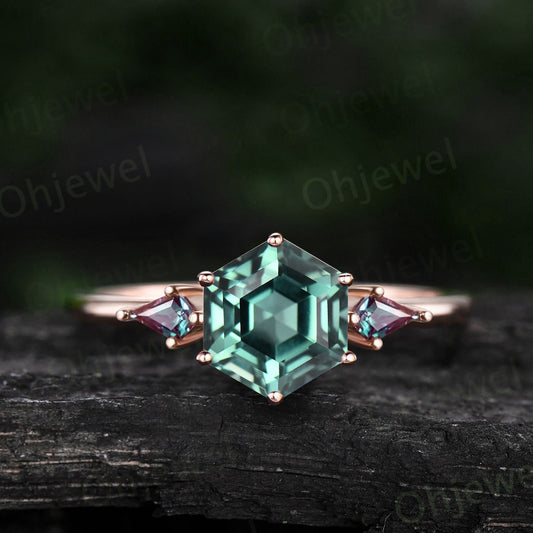 1ct Hexagon cut Alexandrite engagement ring 14k rose gold dainty cluster moissanite amethyst ring vintage unique wedding ring for women gift