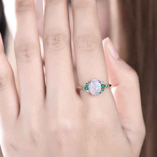 Vintage opal emerald engagement ring rose gold cluster snowdrift peridot topaz ring women gemstone ring unique bridal promise wedding ring