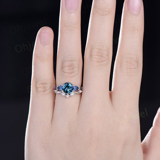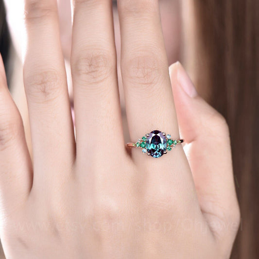 Oval Alexandrite engagement ring art deco cluster opal amethyst topaz ring rose gold gemstone ring dainty bridal ring women fine jewelry