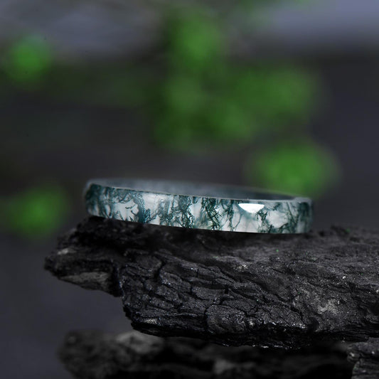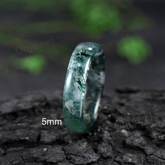 5mm green moss agate wedding band mens natural moss agate ring jewelry anniversary gift for him her dainty vintage engagement ring women