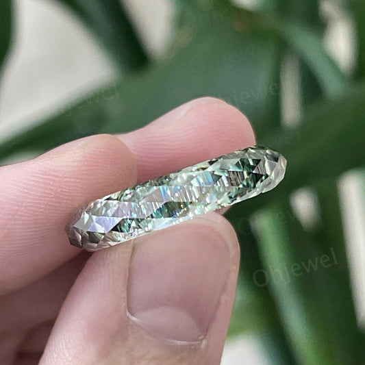 Briolette cut green moissanite wedding band mens full eternity dainty engagement ring women anniversary gift for him her