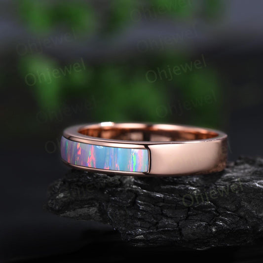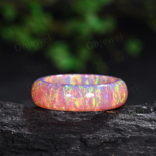 6mm unique fire pink opal wedding band mens orange opal ring minimalist stacking white opal bridal ring engagement ring gift for him husband