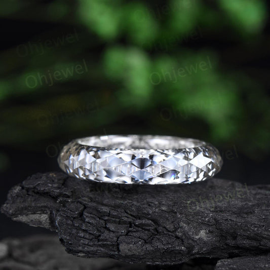 Briolette cut white moissanite wedding band mens full eternity dainty unique engagement ring women anniversary gift for him her