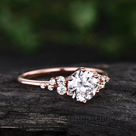 Cluster unique vintage moissanite engagement ring rose gold silver round cut promise ring women six prong ring bridal custom wedding ring