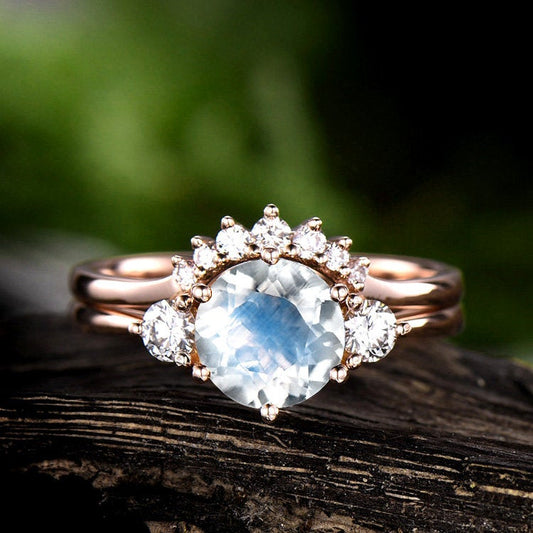 1.2ct blue moonstone ring vintage moonstone engagement ring rose gold 14K/18K Knotted wedding band june birthstone ring promise bridal ring