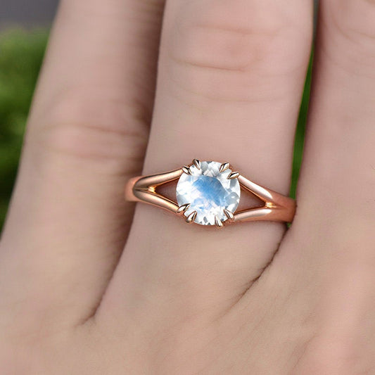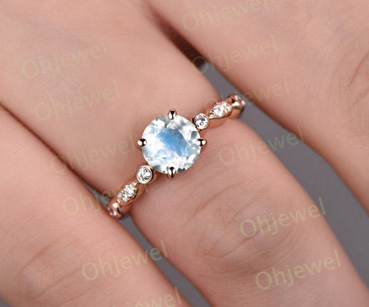 Vintage round cut moonstone ring 14k rose gold white opal ring sterling silver unique engagement ring women dainty anniversary ring gift
