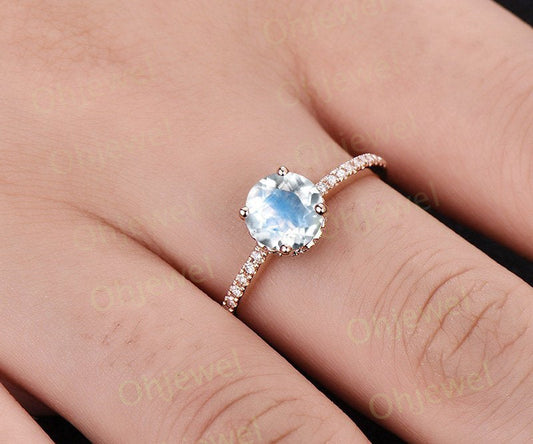 Natural moonstone engagement ring rose gold moonstone ring gold vintage diamond full eternity wedding june birthstone Unique promise ring