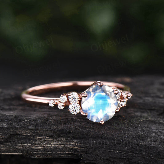 Cluster unique vintage moonstone engagement ring rose gold silver round cut promise ring for women six prong moissanite wedding ring gifts