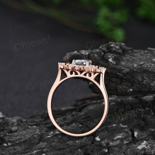Hexagon cut Moonstone ring vintage unique Moonstone engagement ring rose gold dainty cluster art deco alexandrite wedding ring women gift