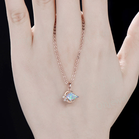 Vintage moon kite cut white opal necklace rose gold star cluster October birthstone dainty unqiue necklace Pendant women anniversary gift