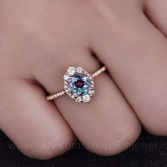 Alexandrite ring for women vintage unique round halo cluster moissanite color change alexandrite engagement ring rose gold wedding gift ring