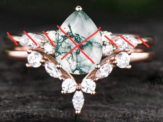 Pear moss agate engagement ring 14k white gold cluster snowdrift diamond ring vintage moon unique bridal wedding ring band set women gift