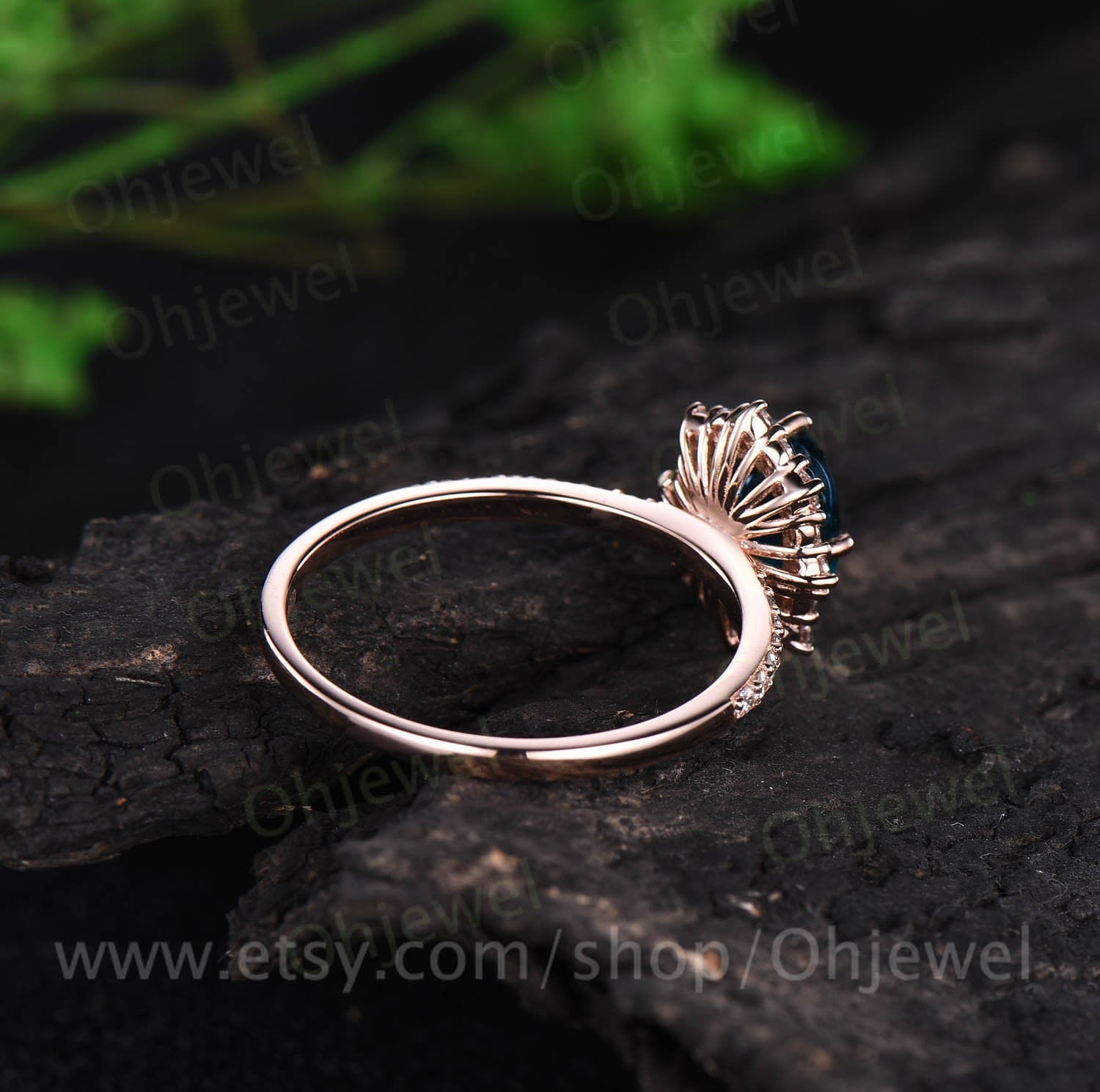 1.3ct London blue topaz ring for women vintage unique halo cluster moissanite ring London blue topaz engagement ring rose gold wedding ring