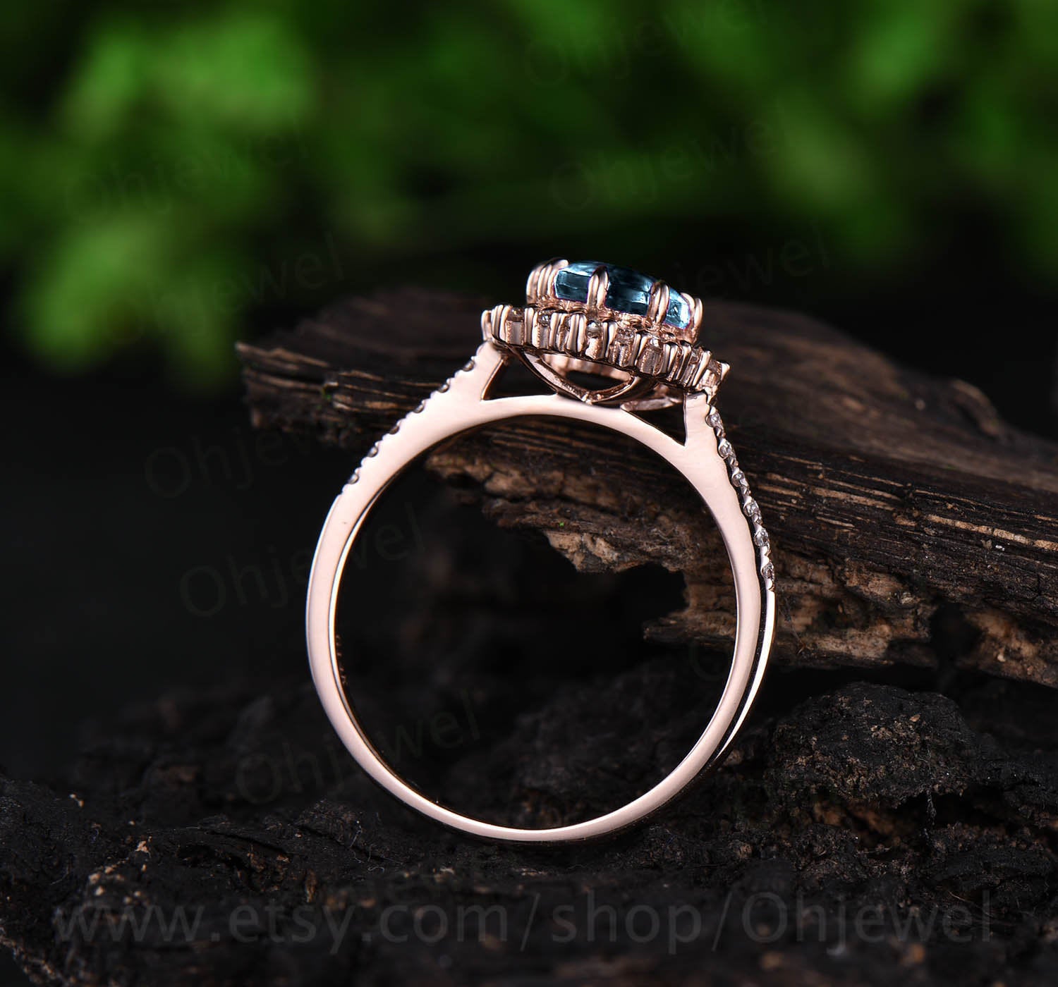 1ct round topaz ring for women vintage unique halo cluster moissanite ring London blue topaz engagement ring rose gold wedding ring band