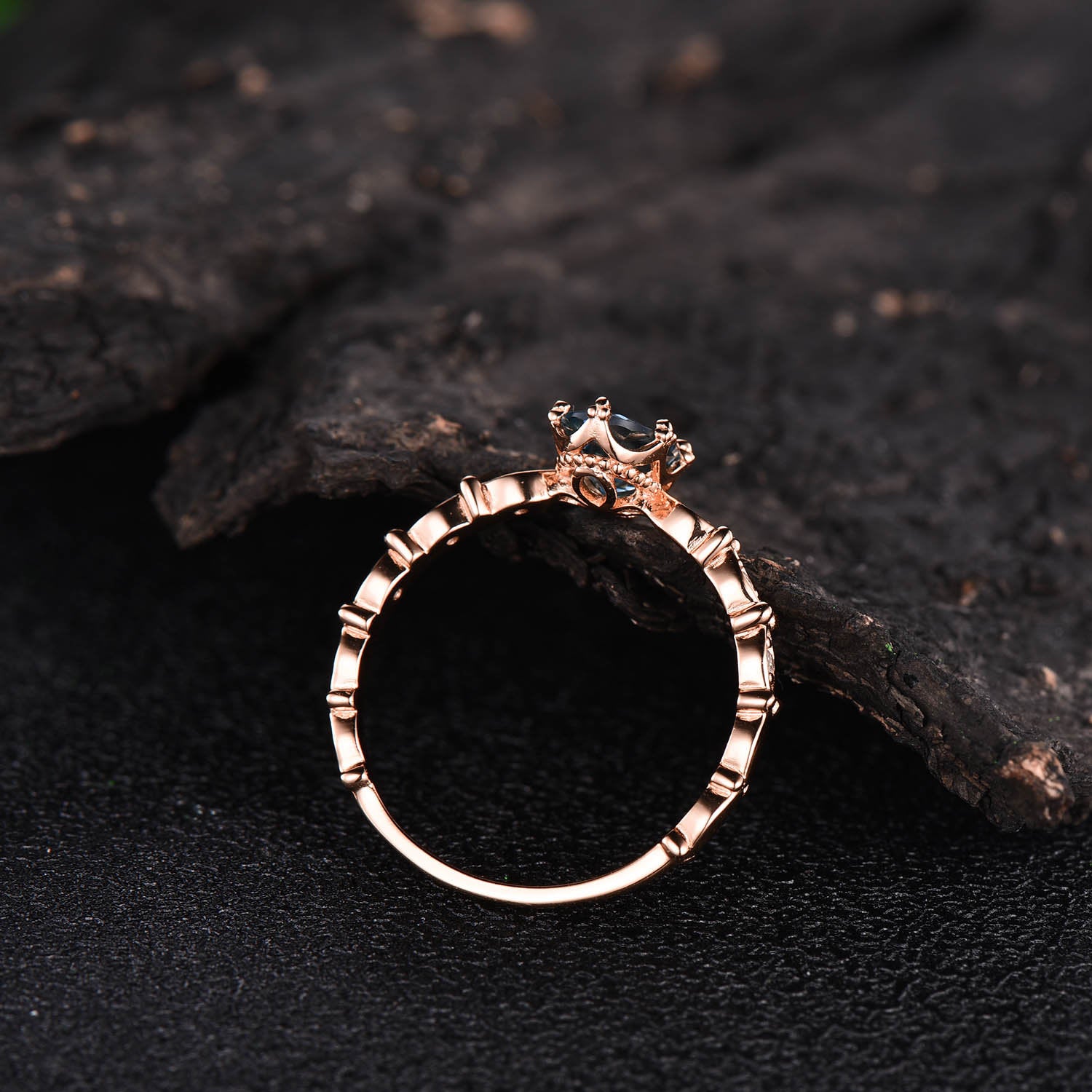 5x7mm oval cut London blue topaz engagement ring solid rose gold ring vintage topaz ring art deco moissanite ring birthday gift for her
