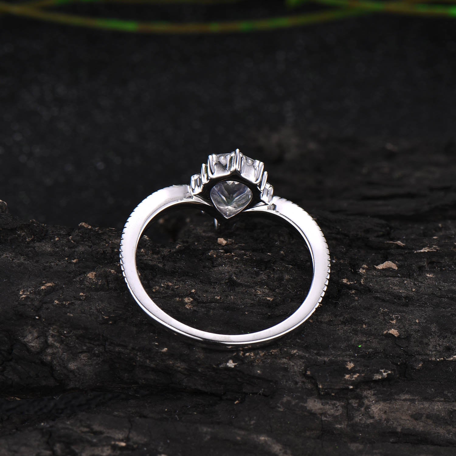 5x7mm pear cut moonstone engagement ring white gold June birthstone ring cluster unique vintage moissanite ring bridal anniversary gift