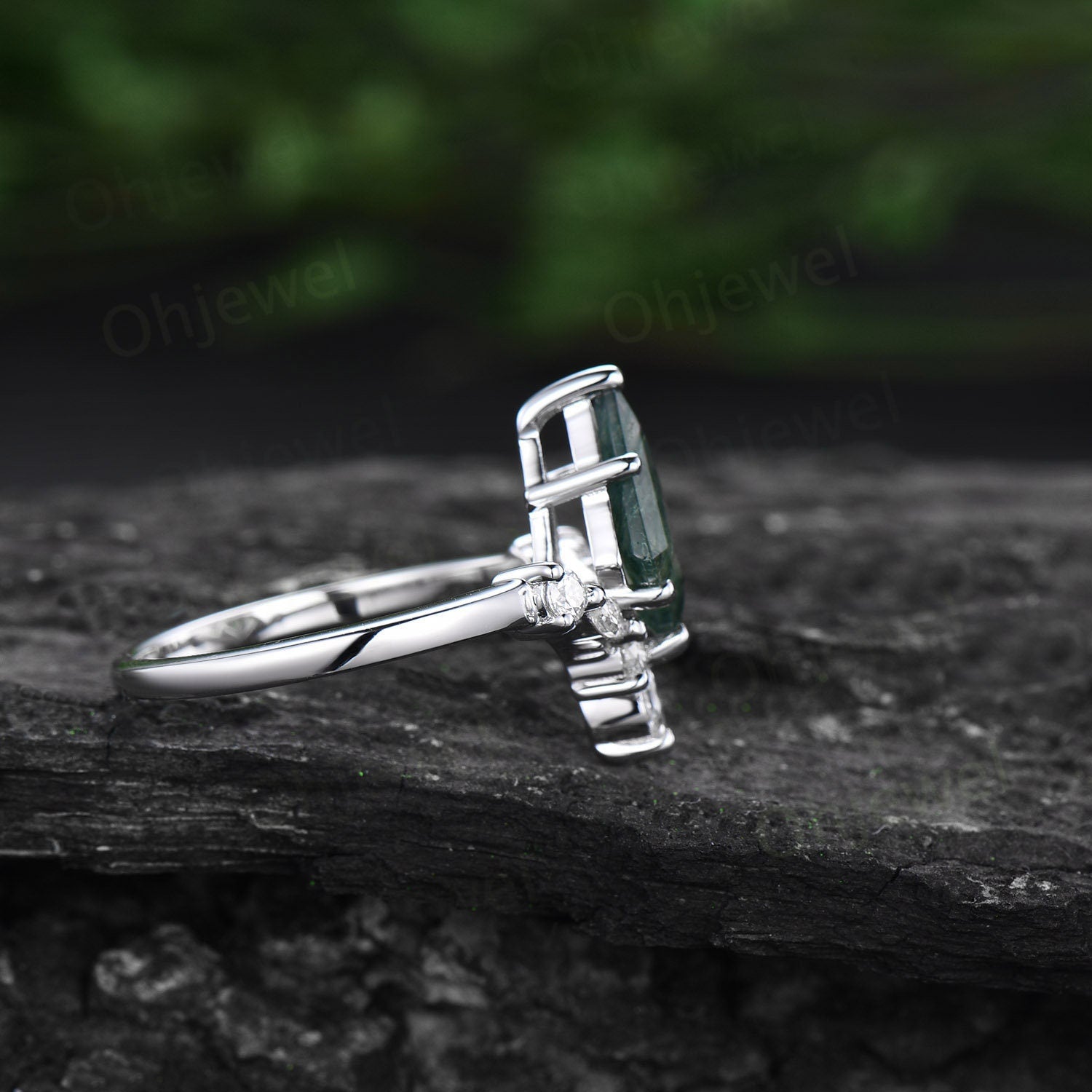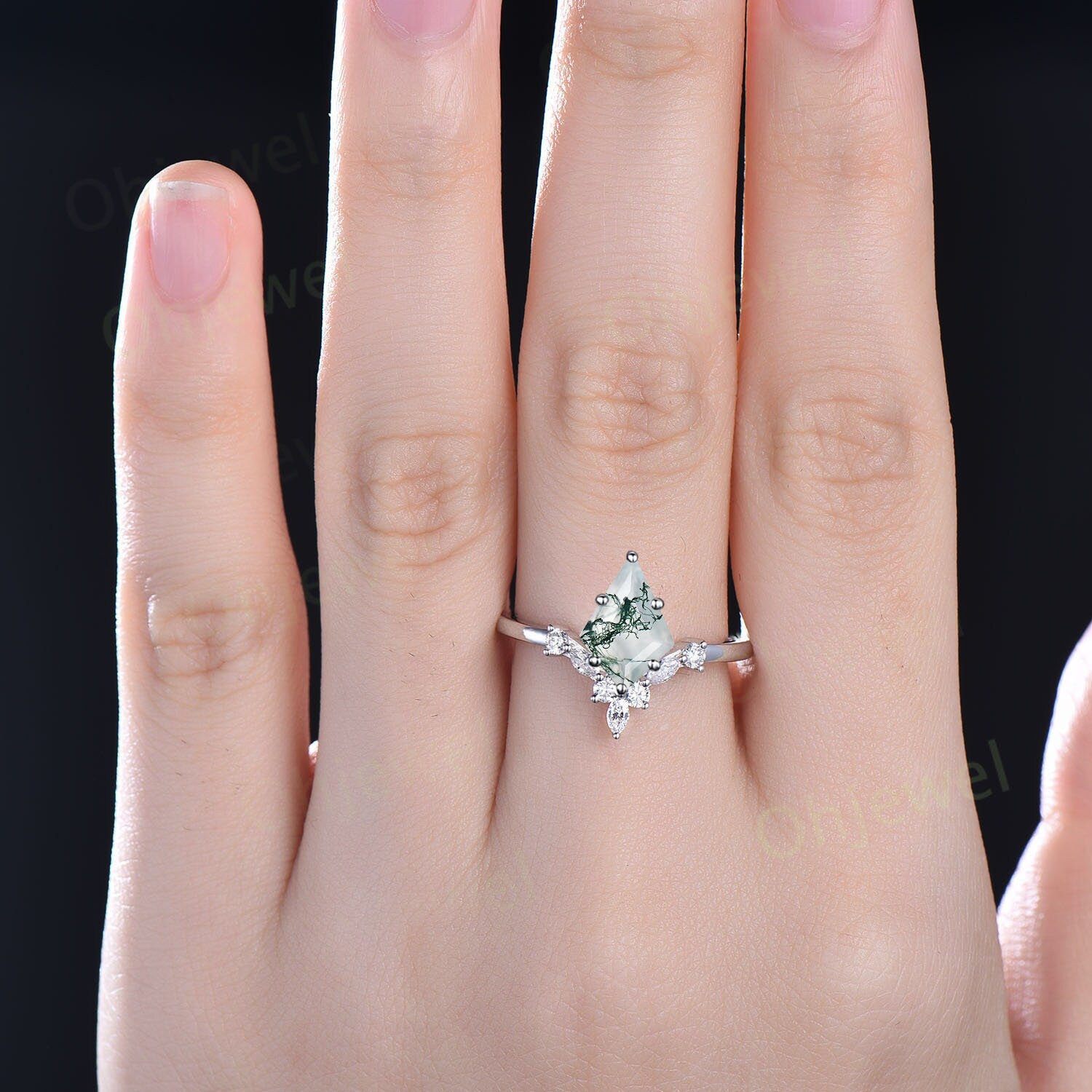 6 prong kite cut green moss agate engagement ring 14k rose gold marquise diamond ring vintage unique wedding promise anniversary ring women