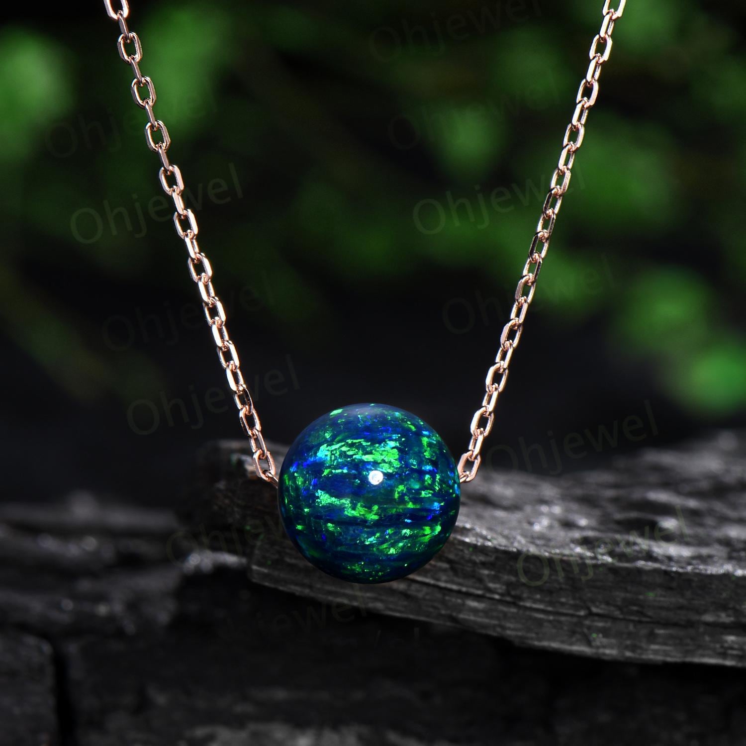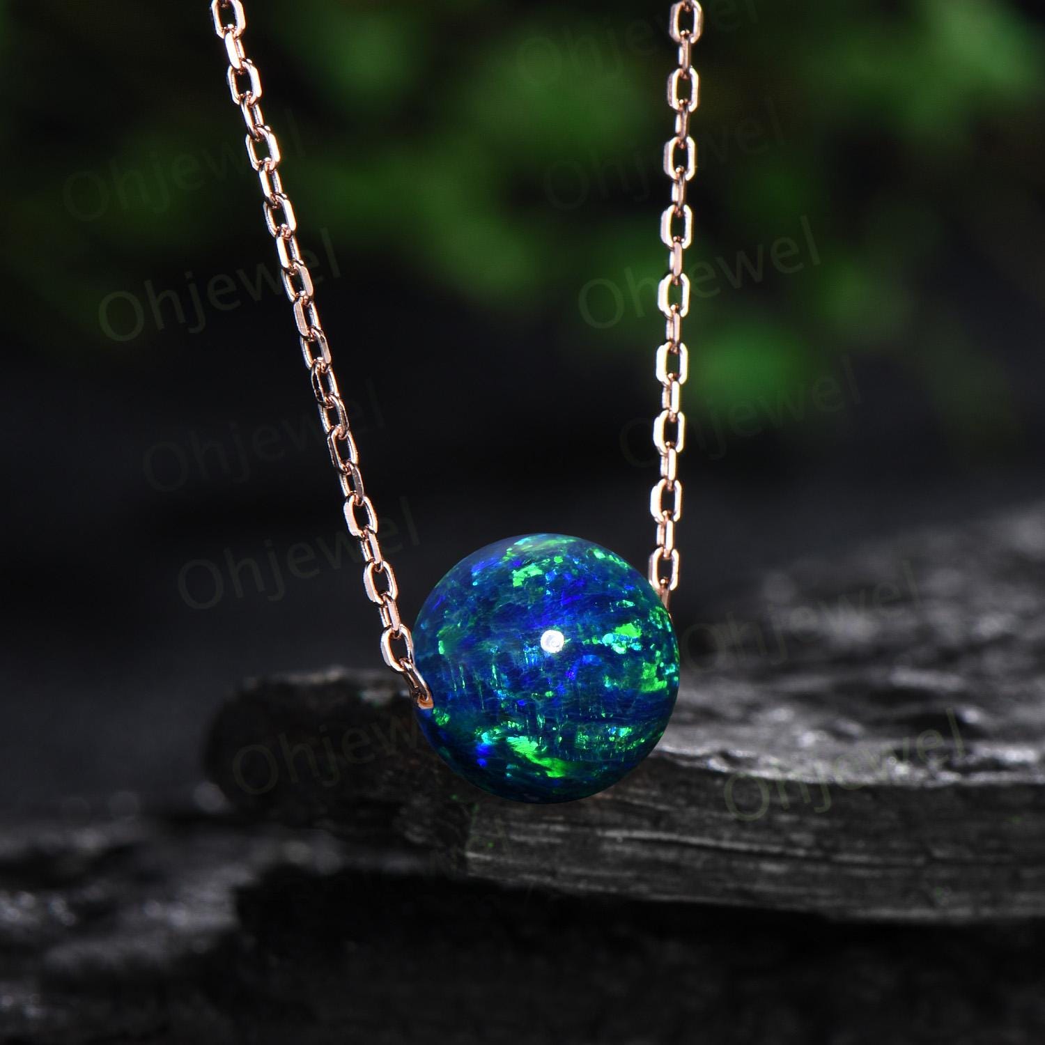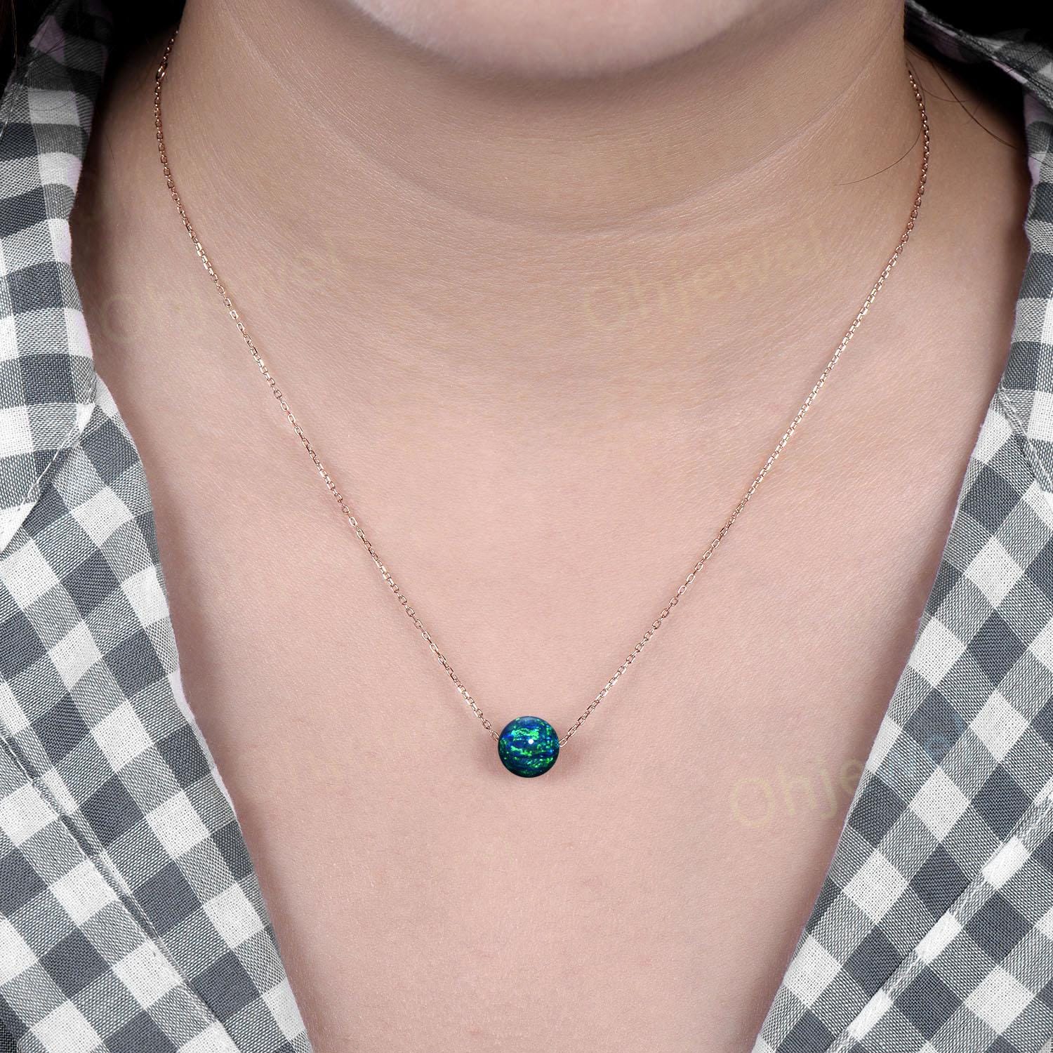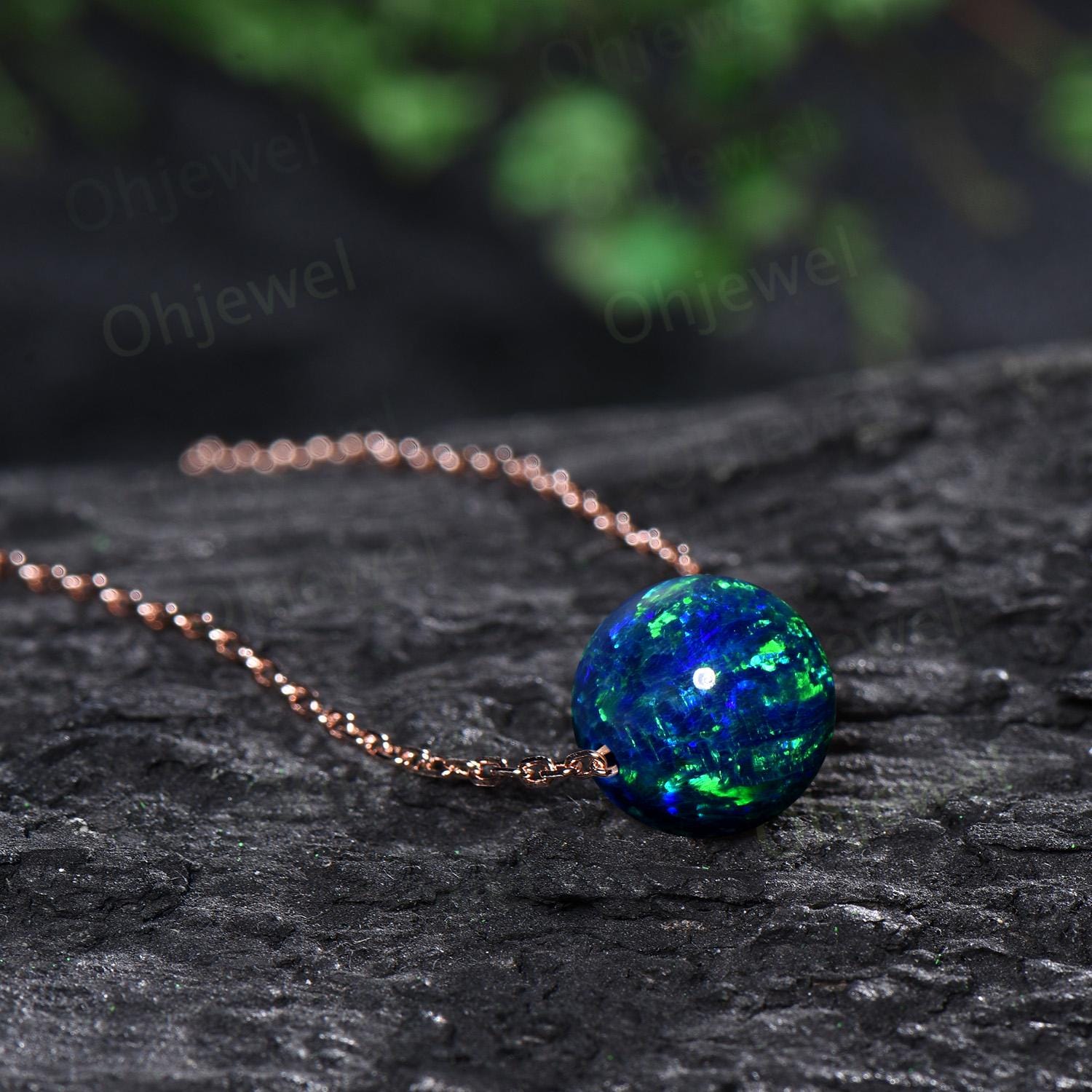 9mm sphere black opal necklace solid 14k rose gold chain Ethiopian blue opal roundels beads pendant women anniversary gift for her silver
