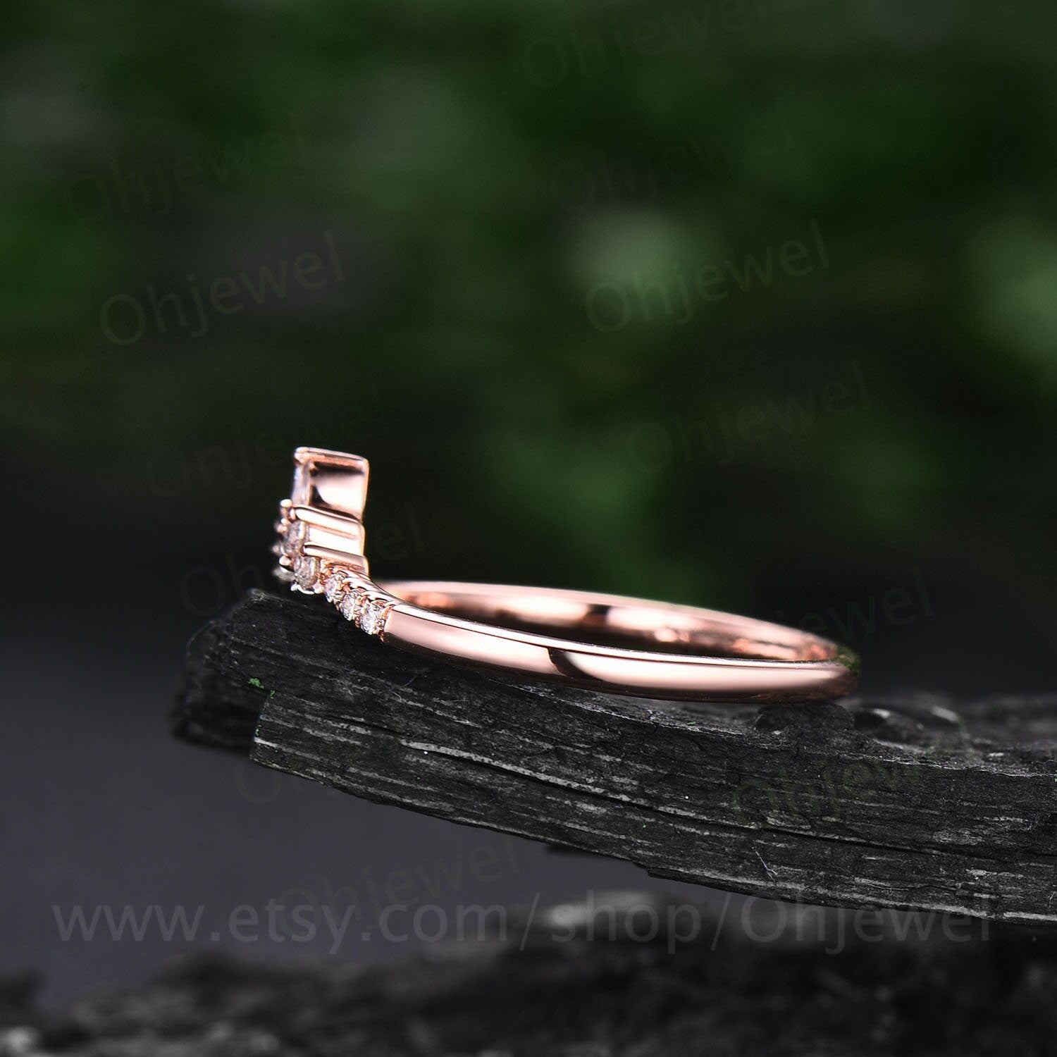 Art deco diamond wedding band 14k rose gold marquise cut moissanite wedding ring band dainty ring unique bridal anniversary ring for women