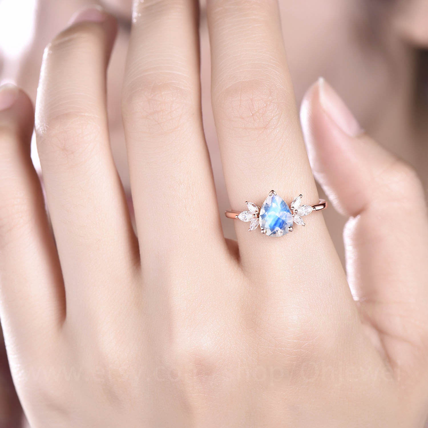 Art deco marquise engagement ring vintage moonstone engagement ring rose gold pear shaped wedding ring moissanite ring June birthstone ring