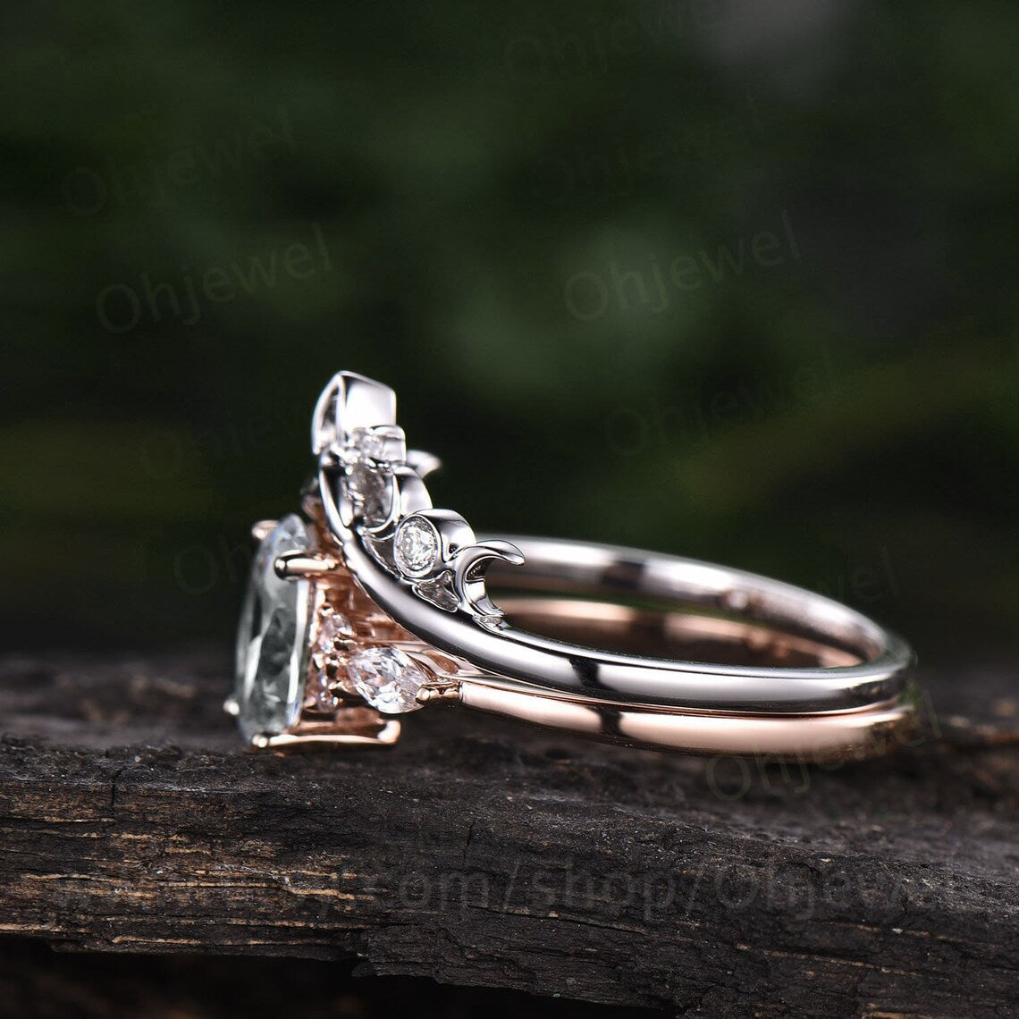 Blue labradorite ring gold sterling silver oval Labradorite engagement ring set art deco vintage marquise moissanite bridal promise ring set