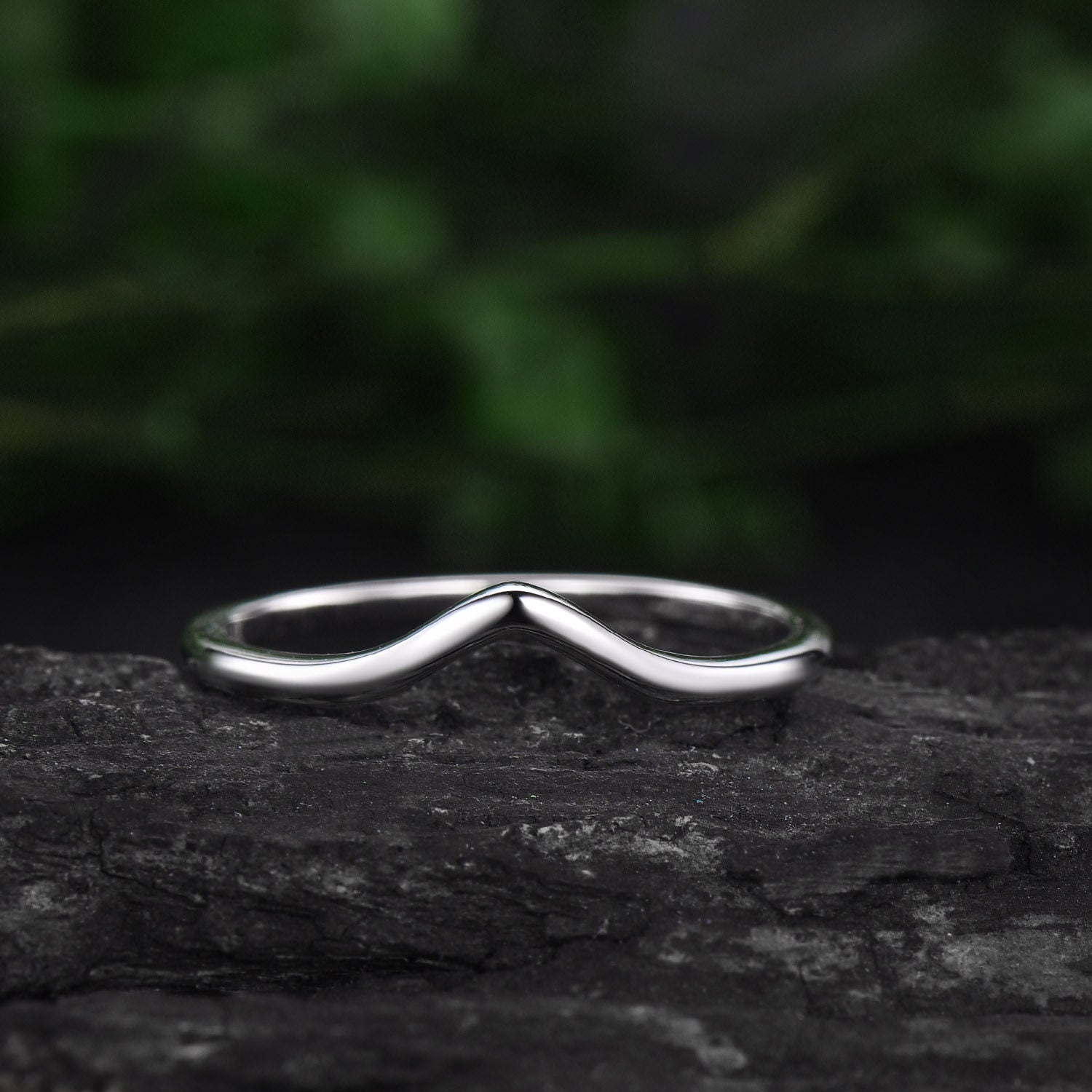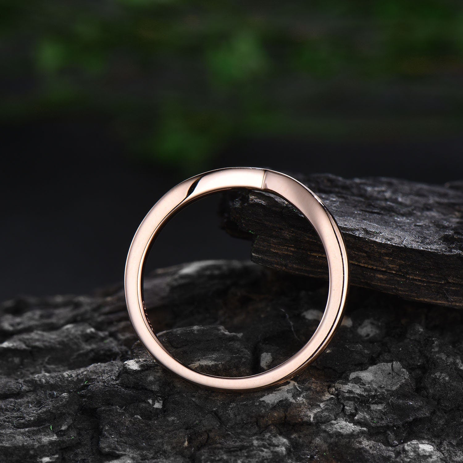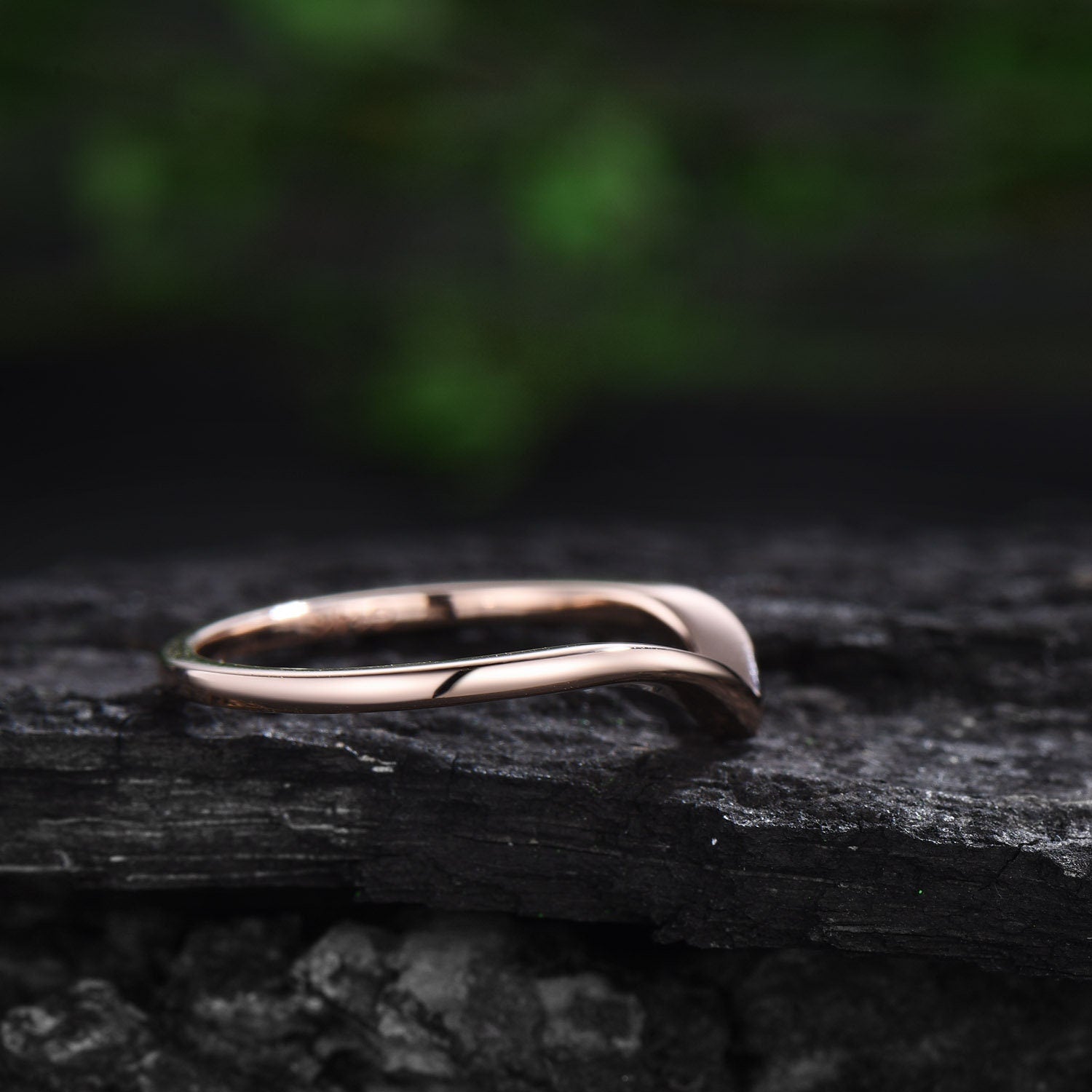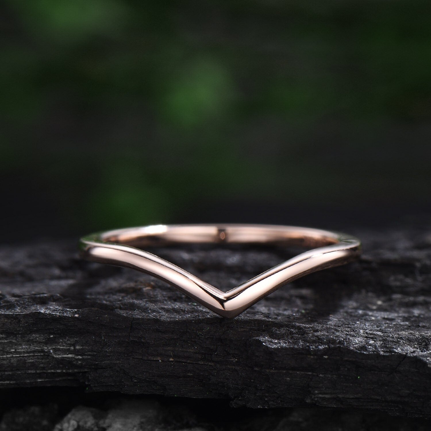 Curved V shaped wedding band solid 14k rose gold solitaire stacking wedding ring band dainty Minimalist anniversary ring women gift for her