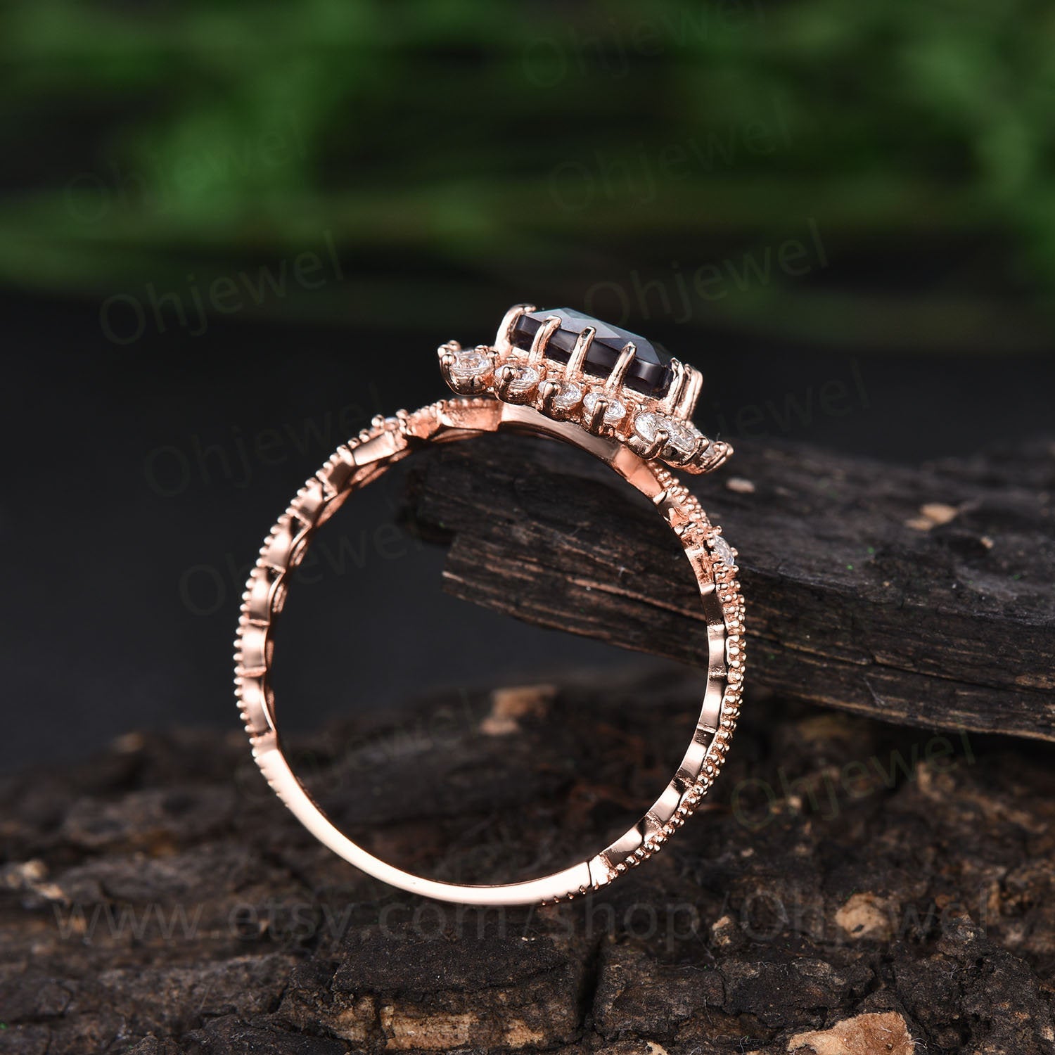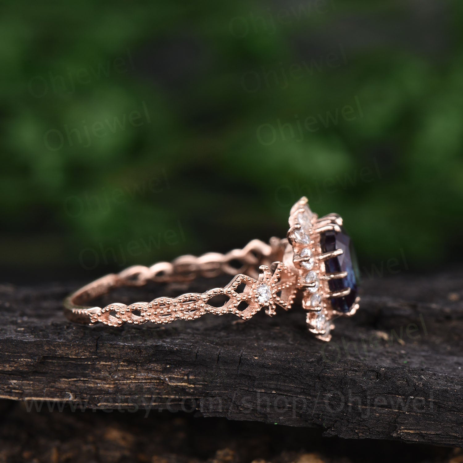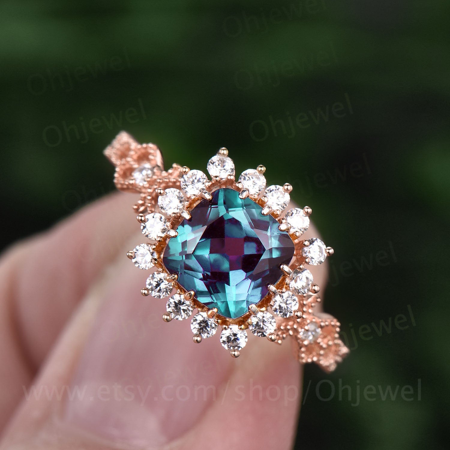 Cushion alexandrite engagement ring vintage alexandrite rings for women antique unique design ring June birthstone ring moissanite halo ring