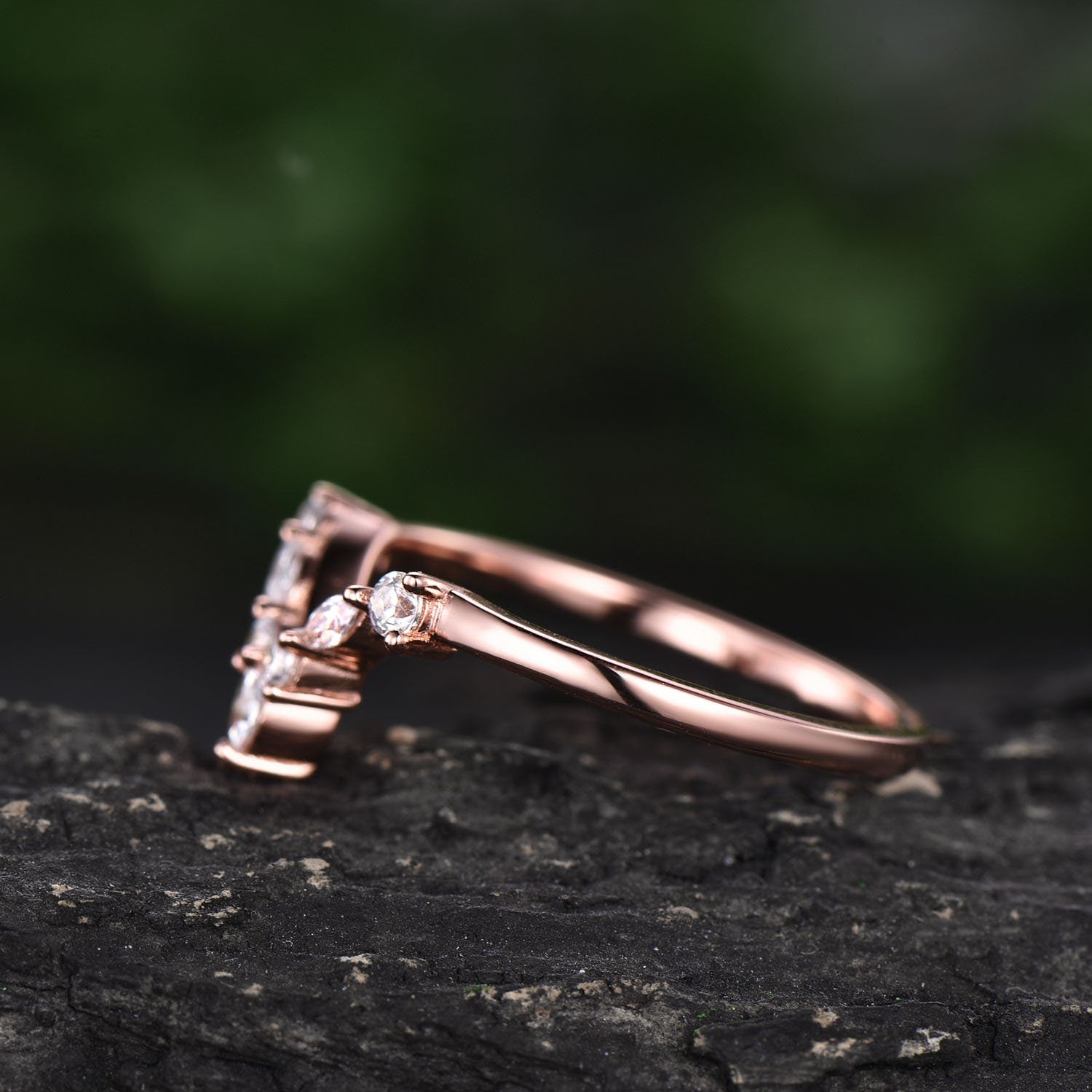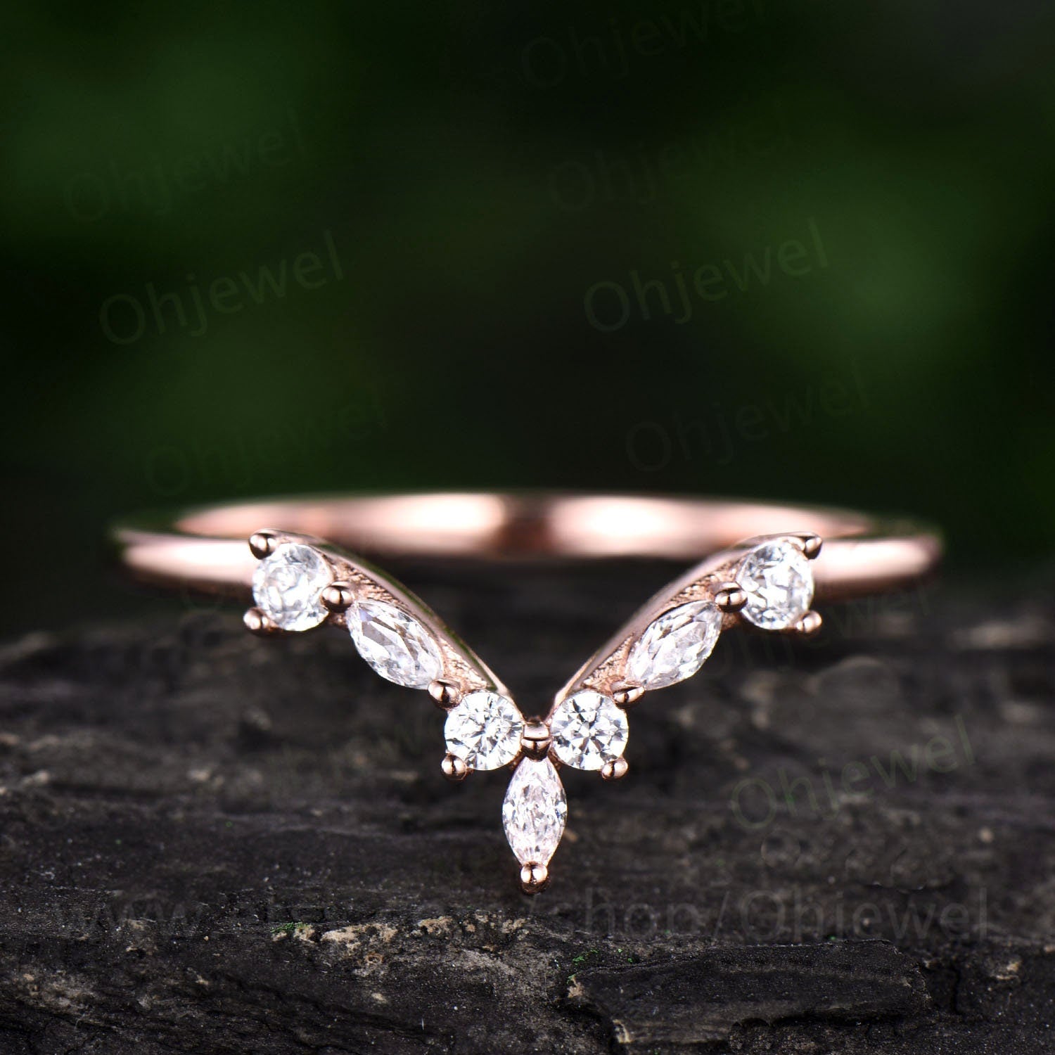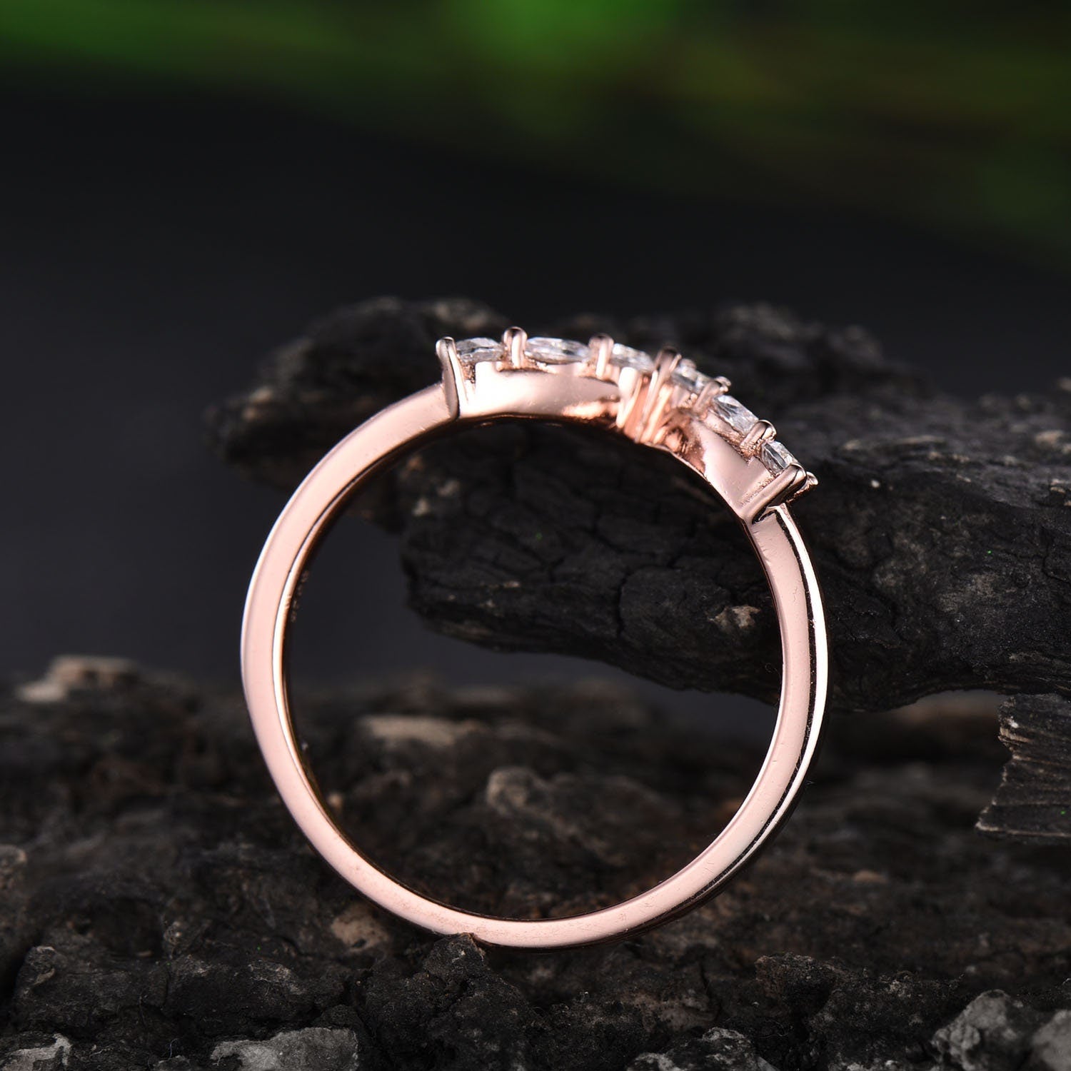 Custom link-V shaped curved moissanite wedding band marquise ring 7 stone ring vintage unique wedding ring bridal gift