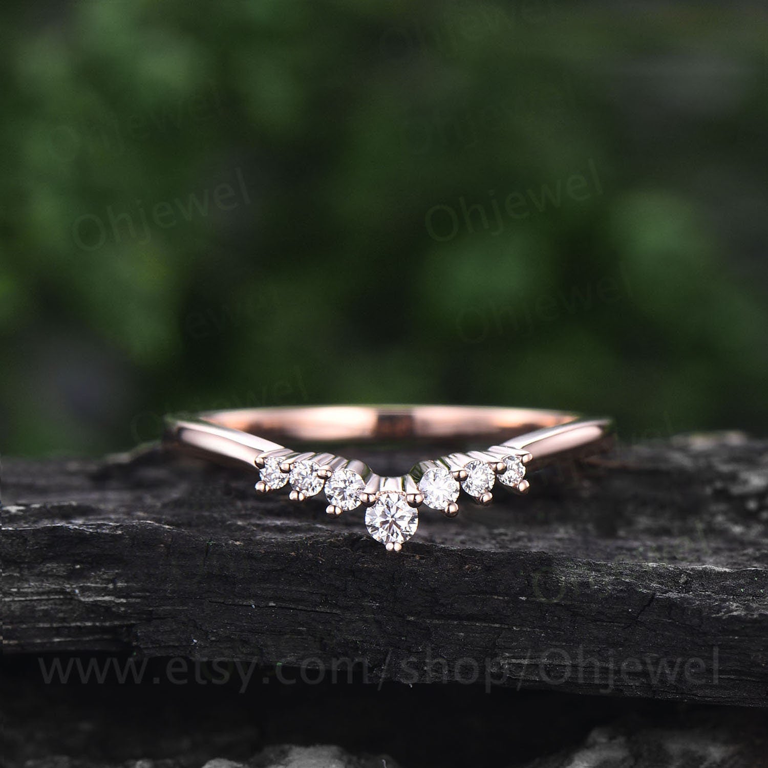 Diamond wedding band 14k rose gold moissanite wedding band stacking ring bridal ring