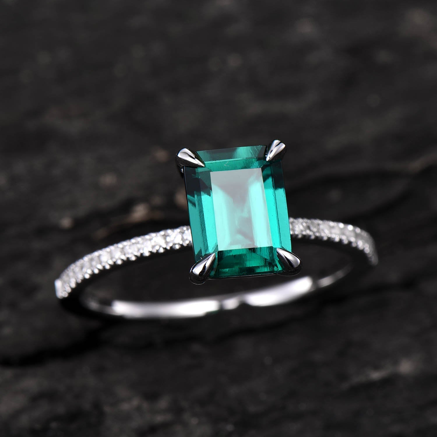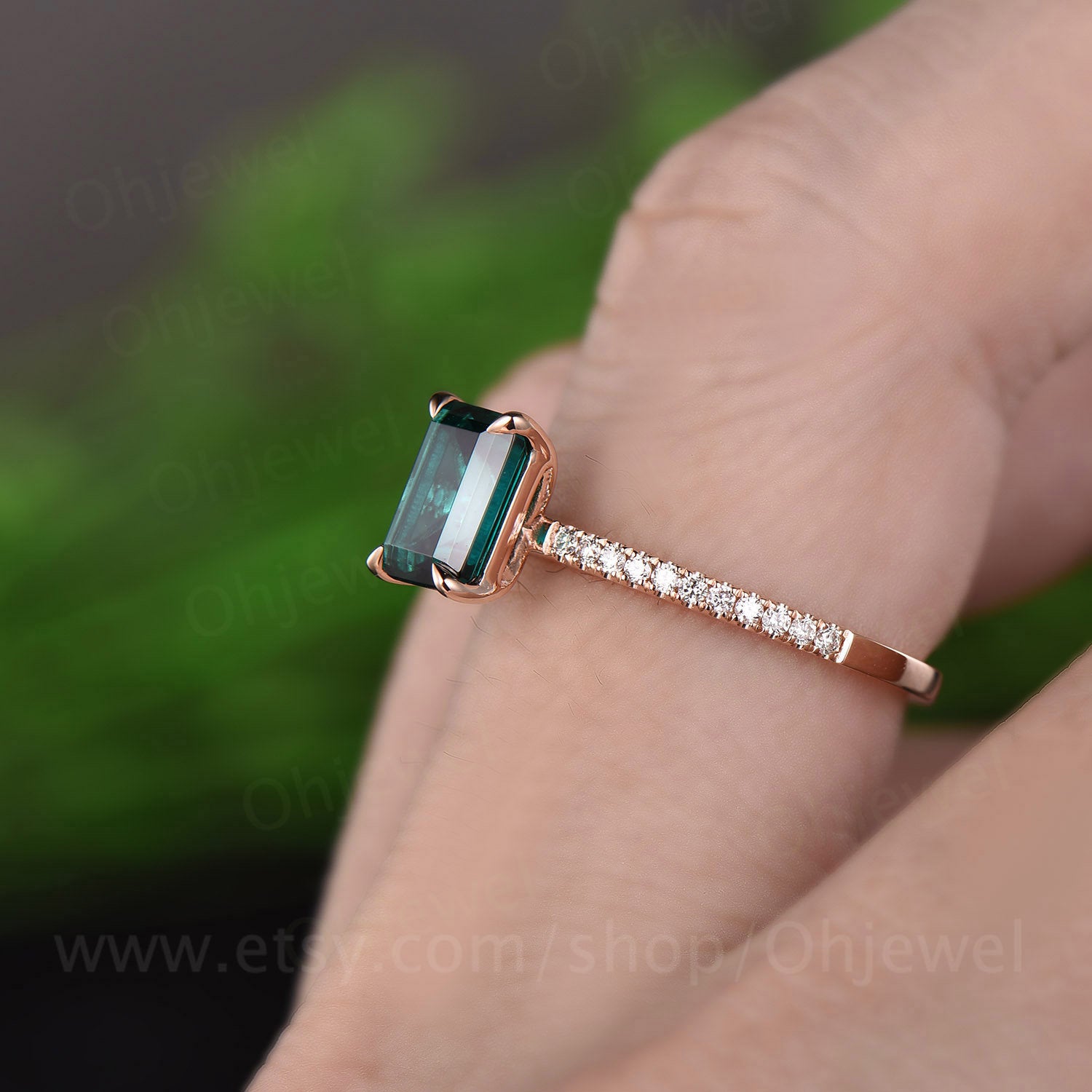 Emerald cut emerald ring for women vintage emerald engagement ring rose gold unique bridal ring half eternity diamond ring anniversary gift